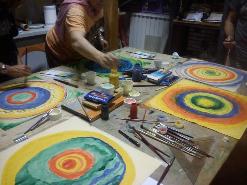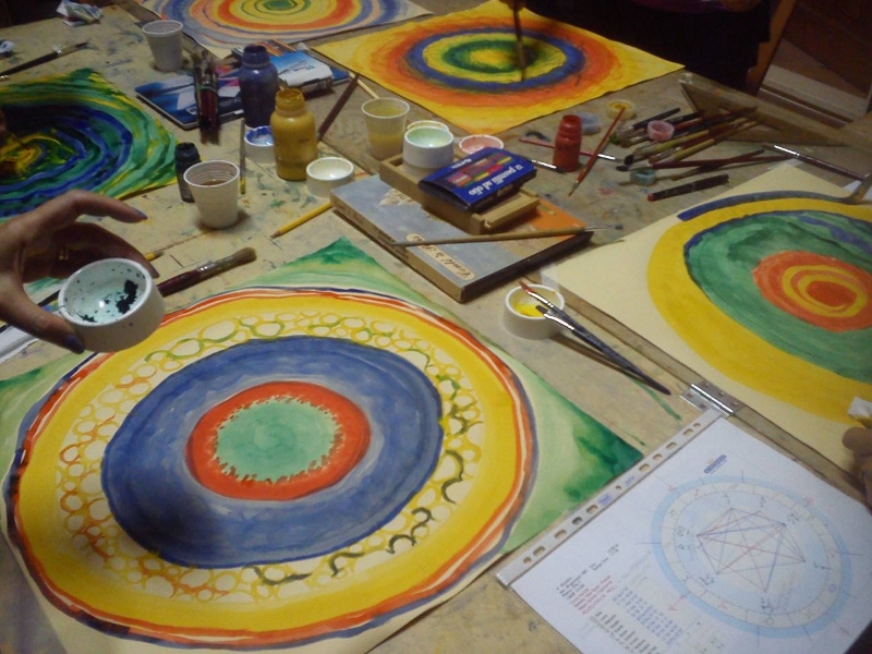Dopo aver condiviso alcuni tratti essenziali del proprio tema natale ognuno prende i pennelli e disegna su un foglio quadrato un personale, nuovo oroscopo; usando i colori preferiti, creando concentricità che ispirino la ricerca della vera via, quella del centro, si realizzerà la forma di un mandala.